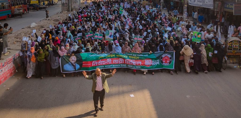 দেশচিন্তা ডেস্ক: চট্টগ্রাম-১১ (বন্দর-পতেঙ্গা) সংসদীয় আসনে বাংলাদেশ জামায়াতে ইসলামী মনোনীত ও ১১ দল সমর্থিত প্রার্থী মোহাম্মদ শফিউল আলম-এর সমর্থনে রোববার (৮ ফেব্রুয়ারি) এক বিশাল নারী মিছিল অনুষ্ঠিত হয়েছে। দাঁড়িপাল্লা প্রতীকে ভোট চেয়ে রাজপথে নেমে আসেন এলাকার বিপুল সংখ্যক নারীরা। মিছিলে অংশগ্রহণকারী নারীরা স্বতঃস্ফূর্তভাবে দুর্নীতি, চাঁদাবাজি ও অনিয়মমুক্ত সমাজ গঠনের প্রত্যয়ে তাদের সমর্থন ব্যক্ত করেন।