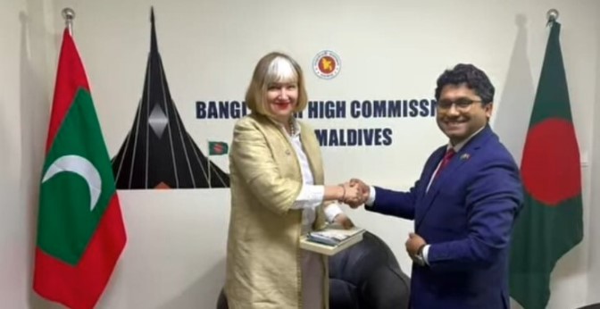 দেশচিন্তা ডেস্ক: শ্রীলঙ্কা ও মালদ্বীপে আন্তর্জাতিক শ্রম সংস্থার (আইএলও) কান্ট্রি ডিরেক্টর জনি সিম্পসনের সঙ্গে মালদ্বীপে নিযুক্ত বাংলাদেশের হাইকমিশনার মো. নাজমুল ইসলাম সাক্ষাৎ করেছেন।