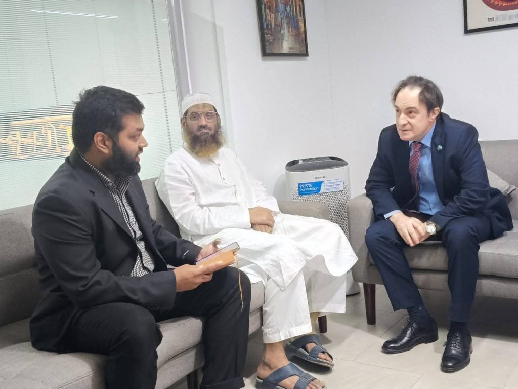বাংলাদেশ খেলাফত মজলিসের আমীর আল্লামা মামুনুল হক আজ ঢাকাস্থ আর্জেন্টিনা দূতাবাসে গিয়ে বাংলাদেশে নিযুক্ত আর্জেন্টিনা প্রজাতন্ত্রের সম্মানিত জনাব রাষ্ট্রদূত মি. মারসেলো সি. চেসা (Mr. Marcelo C. Cesa)–এর সঙ্গে সৌজন্য সাক্ষাৎ করেন।