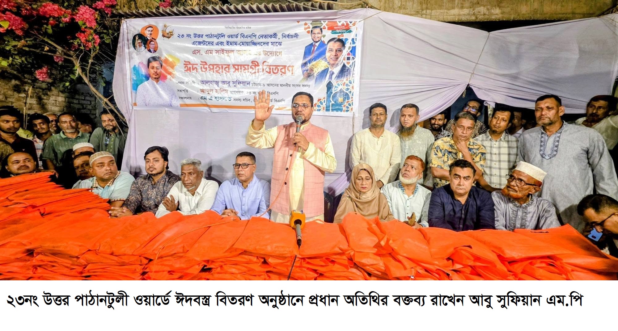 শনিবার (১৪ মার্চ) ২৩নং উত্তর পাঠানটুলী ওয়ার্ডে চট্টগ্রাম মহানগর বিএনপির য্গ্মু আহবায়ক এস.এম সাইফুল আলমের উদ্যোগে দলীয় নেতাকর্মী, এয়োদশ জাতীয় সংসদ নির্বাচনে দায়িত্ব পালনকারী নির্বাচনী এজেন্ট ও ইমাম-মুয়াজ্জিনদের মাঝে "ঈদ উপহার বিতরণ" অনুষ্ঠানে প্রধান অতিথির বক্তব্যে তিনি এ কথা বলেন।