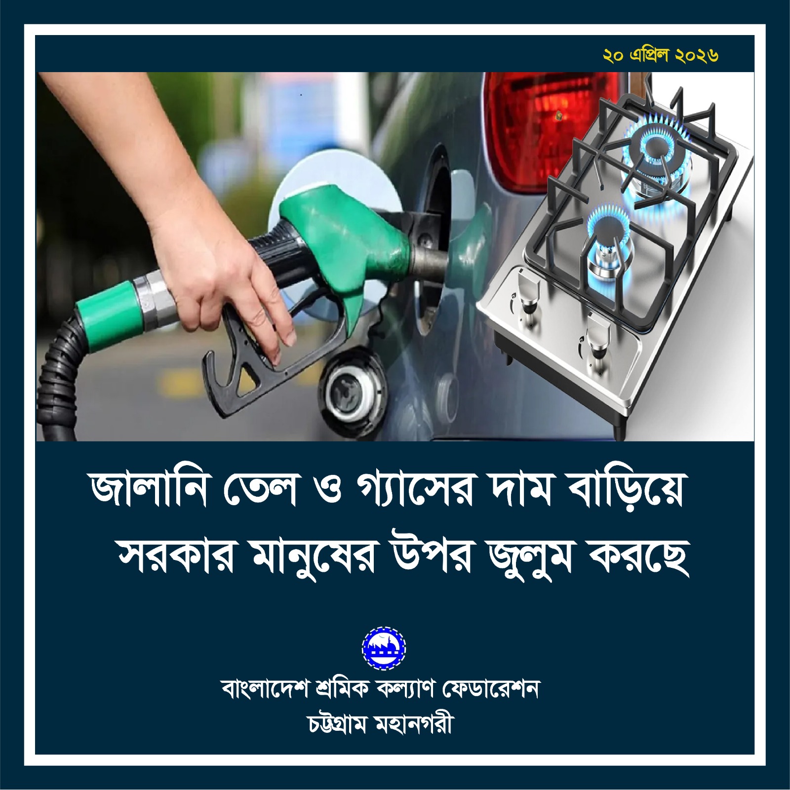 দেশচিন্তা ডেস্ক: জ্বালানি তেলের মূল্যবৃদ্ধি, ঘন ঘন লোডশেডিং এবং এর ফলে জনজীবন ও শিল্প উৎপাদন মারাত্মকভাবে ব্যাহত হওয়ায় গভীর উদ্বেগ প্রকাশ করেছে বাংলাদেশ শ্রমিক কল্যাণ ফেডারেশন চট্টগ্রাম মহানগর।