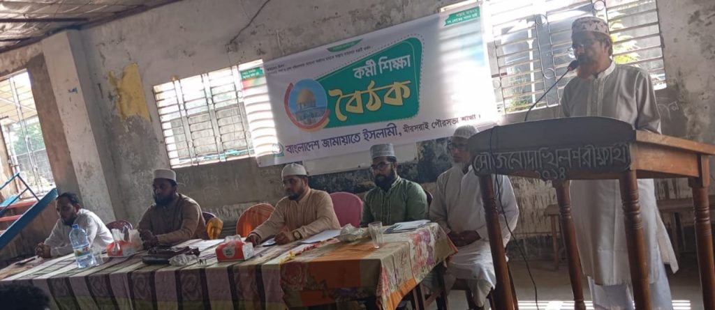 এস এম জাকারিয়া, মীরসরাই (চট্টগ্রাম) প্রতিনিধি : বাংলাদেশ জামায়াতে ইসলামী,মীরসরাই পৌরসভা শাখার উদ্যোগে আজ সকাল ৯.০০ টায়,স্থানীয় মীরসরাই লতিফীয়া কামিল মাদ্রাসার হলরুমে এক “কর্মী শিক্ষা বৈঠক” (টি.এস) অনুষ্ঠিত হয়। পৌরসভার আমীর জনাব মাও. শিহাব উদ্দিনের সভাপতিত্বে ও সেক্রেটারি জনাব ইকরামুল হকের সঞ্চালনায় উক্ত প্রোগ্রামে প্রধান অতিথি হিসেবে উপস্থিত ছিলেন বাংলাদেশ জামায়াতে ইসলামী মীরসরাই উপজেলার সম্মানিত আমীর জনাব, মাও.নুরুল কবির।