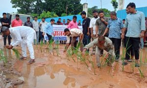 খাগড়াছড়িতে সড়কে ধানের চারা রোপণ করে প্রতিবাদ