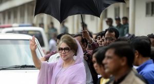 স্বাস্থ্য ও নিরাপত্তা বিবেচনায় বিশেষভাবে তৈরি একটি বুলেটপ্রুফ মিনিবাসে নির্বাচনি সফরে বের হচ্ছেন বেগম জিয়া